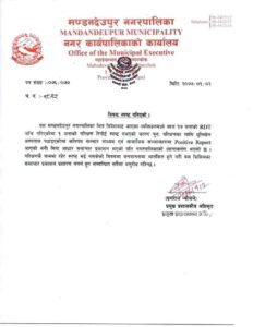 हिजो बैशाख २ गते १७ जनामा कोरोना भाइरस परिक्षण गरेकोमा १६ जनाको रिपोर्ट नेगेटिभ र एक जनाको रिपोर्ट सङ्कास्मत भएकोले रिपोर्ट स्प्रस्ट नभएकोले तुरुन्तै स्वाब परिक्षण गर्न धुलिखेल लागिएको हो। रिपोर्ट आउन ढिलो भएकोले विभिन्न मिडियाले सत्य तथ्य नबुझी अनावश्यक भ्रम फैलाउने काम भएकोले अनावश्यक भ्रम नफैलाउ रिपोर्ट आउन बाकि छ। अध्यक्ष आचार्यले बताए ।